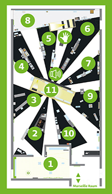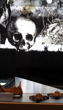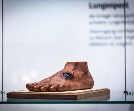 Doch nicht die Bebilderung des medizinhistorischen Themas, sondern das räumliche Erlebbarmachen war Ziel der Szenografie. Es galt, die Balance zu finden zwischen einem medizinisch-nüchternen Blick auf Entstehung, Epidemiologie und Erreger der Pest und einem sensiblen Umgang mit der Darstellung von Machtlosigkeit, Ausgrenzung und Angst.